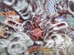 Im "Zerstörungszyklus" besiegt Wasser das Feuer, Feuer zerstört Metall,